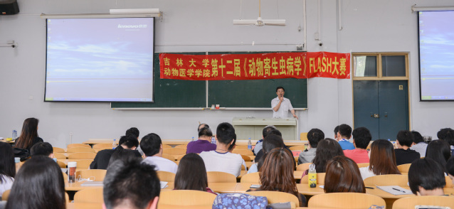 于2019年6月14日上午在科学讲堂100教室,成功举办了第十二届《动物寄生虫病学》FLASH大赛。应邀到场的评委嘉宾有学校教学督导组王哲教授、预防兽医系丁壮教授、兽医公共卫生系王新平教授、基础兽医系邱家章教授、临床兽医系付本懂教授,以及动物寄生虫病学科组的张西臣教授、李建华教授、尹继刚教授、宫鹏涛副教授和杨举老师。参赛人员为2015级动物医学专业全体学生,共计100余人。