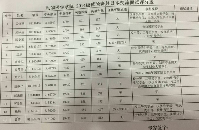 与日本北里大学签订了互派留学生协议。为了做好2014级试验班同学到日本北里大学短期培训、交流等工作的顺利实施,学院制定了培训、交流学生资格审核初选条件: