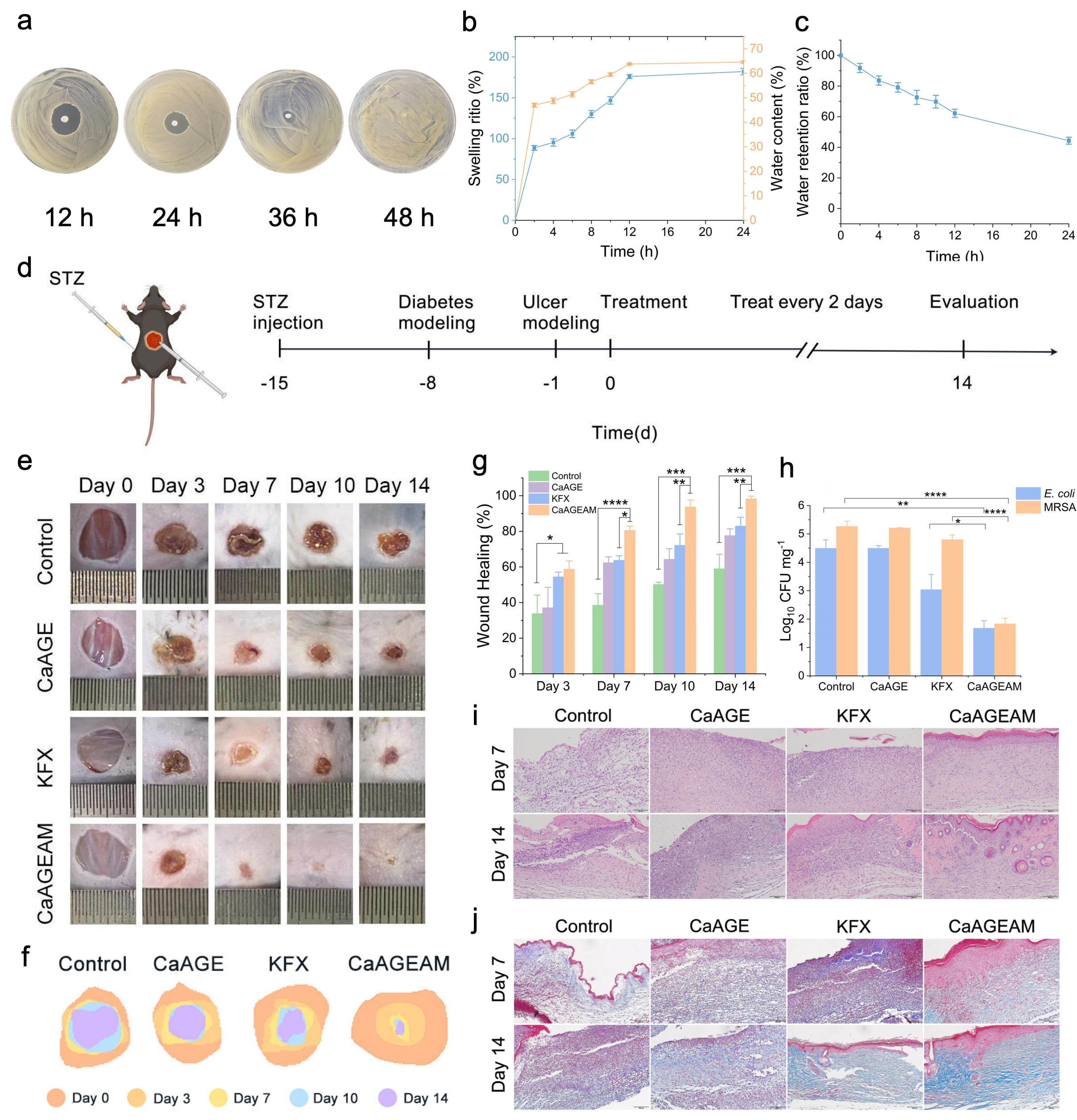 同时,抗菌肽SR25功能化水凝胶被开发用于治疗感染的糖尿病伤口。在糖尿病小鼠伤口感染模型中,负载抗菌肽SR25的水凝胶对大肠杆菌和耐甲氧西林金黄色葡萄球菌的混合感染表现出高效性,加速伤口愈合。