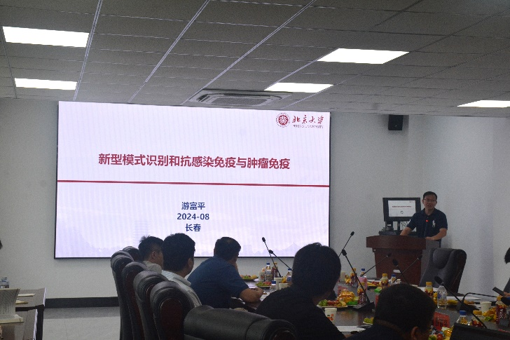 北京大学基础医学院病原学系主任,系统生物医学研究所副所长,国家海外引进青年人才游富平教授,以《新型模式识别和抗病毒及肿瘤免疫》为题,介绍了新型模式识别和抗病毒及肿瘤免疫免疫系统对于识别病原生物感染的重要性,天然免疫作为对感染快速应答的防御系统,包含有多种模式识别受体(PRRs)。PRRs不仅够识别PAMP,也能够识别机体内在损伤相关分子模式(DAMP),包括肿瘤细胞、死亡的细胞和细胞应急释放的蛋白、核酸和脂类等。正常的天然免疫模式识别对清除感染和肿瘤,维持免疫平衡和机体健康不可或缺。而异常的天然免疫模式识别能够促进炎症因子风暴、自身免疫性疾病、肿瘤以及衰老的发生。游富平教授课题组关注抗病毒免疫、肿瘤发生和衰老过程中的免疫识别和异常调节的分子机制,并为相关疾病的治疗提供潜在靶点,取得了一系列研究成果。