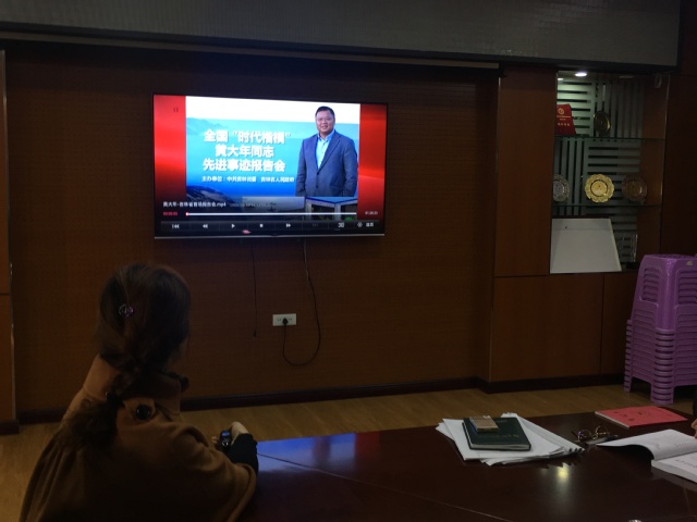 党委在三楼会议室组织观看《全国时代楷模黄大年同志先进事迹报告会》。党委班子成员以及全体支部书记参加了观看和学习讨论。