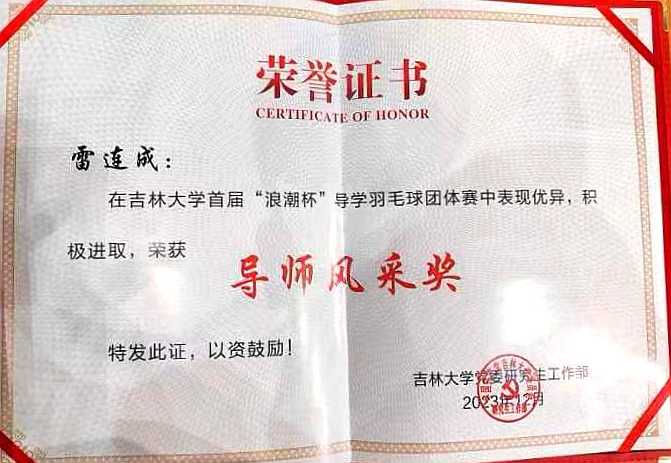 雷连成老师荣获“导师风采奖”,裸体直播