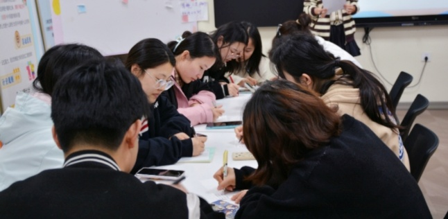 活动伊始,由主持人进行开场,进入放松热场阶段,同学们按照任意座位坐好,在准备好的纸上写下今天活动中所扮演的新名字,在小组内轮流对自己的新名字和代表pose进行介绍,各位同学逐渐进入放松沉浸状态,为后面班会的开展打下了良好的基础。