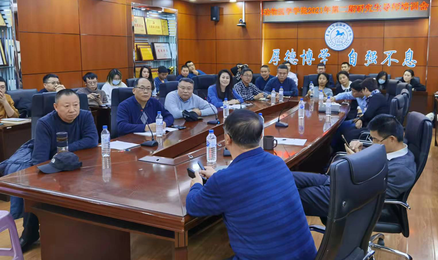 研究生导师队伍建设,全面提升学院导师队伍水平与研究生教育教学水平,切实强化导师自身职责与任务,提升指导能力,充分发挥导师言传身教作用,推进“双一流”建设,学院召开新聘研究生指导教师和专业学位研究生指导教师培训会。会议分为线下和线上的形式同步进行,参会人数达100余人。会议由裸体直播