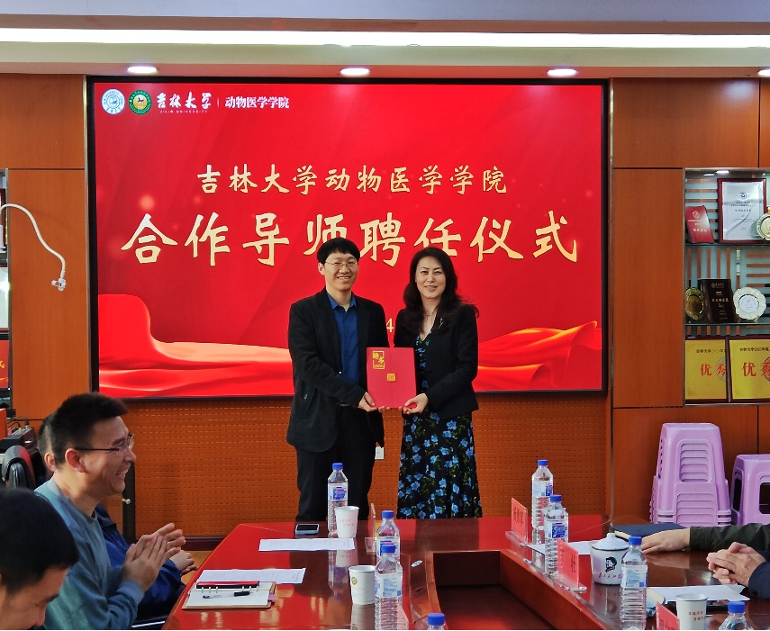 合作导师聘任决定,为天津瑞普生物技术股份有限公司副总裁朱秀同、总经理任培森颁发聘书。