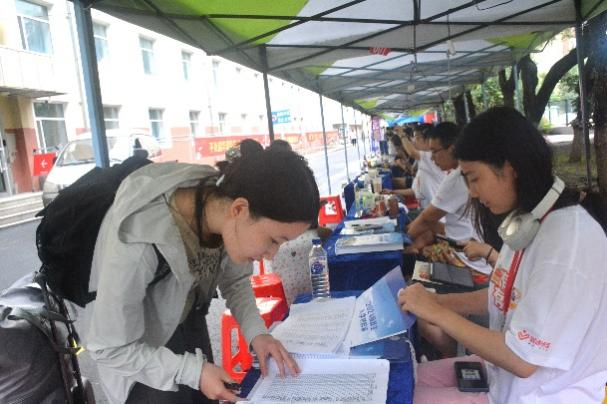 的全新旅程。学院党委副书记秦明、研究生辅导员王慧丽老师一大早就赶到迎新现场,全面安排各项工作,精心布置、以确保迎新活动顺利推进。研究生志愿者们细致耐心,认真负责,仔细核对新生信息,为新生办理登记注册,并热心的为同学们答疑解惑,他们忙碌穿梭的身影在校园内形成了一道道靓丽的风景线。