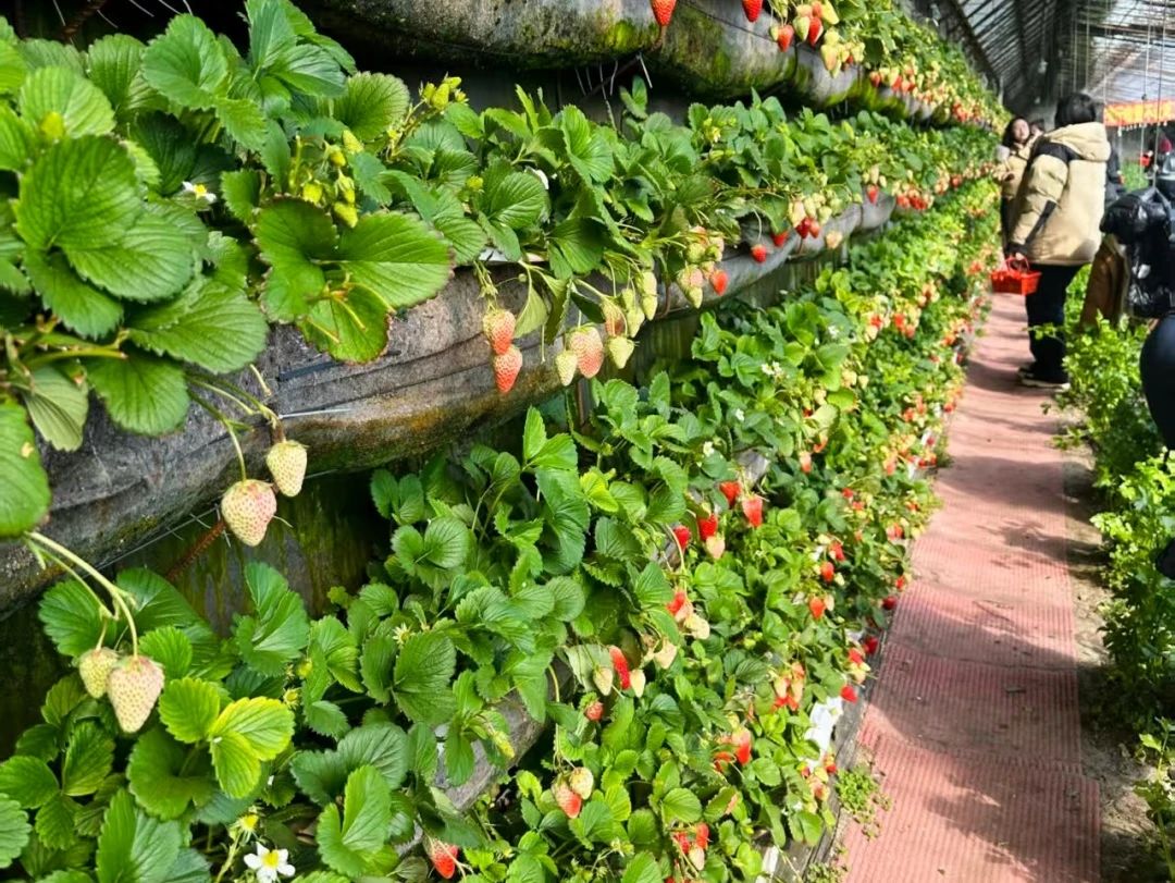 踏入草莓大棚,温暖的春日阳光洒在一排排整齐的田垄上,一阵甜美的果香迎面而来。抬眼望去,翠绿的叶片间点缀着诱人的一颗颗草莓,红彤彤的外表下藏着多汁的甜味,仿佛在向每一位前来的女教师招手。老师们手提篮子,在田垄间尽情地享受着采摘的乐趣。