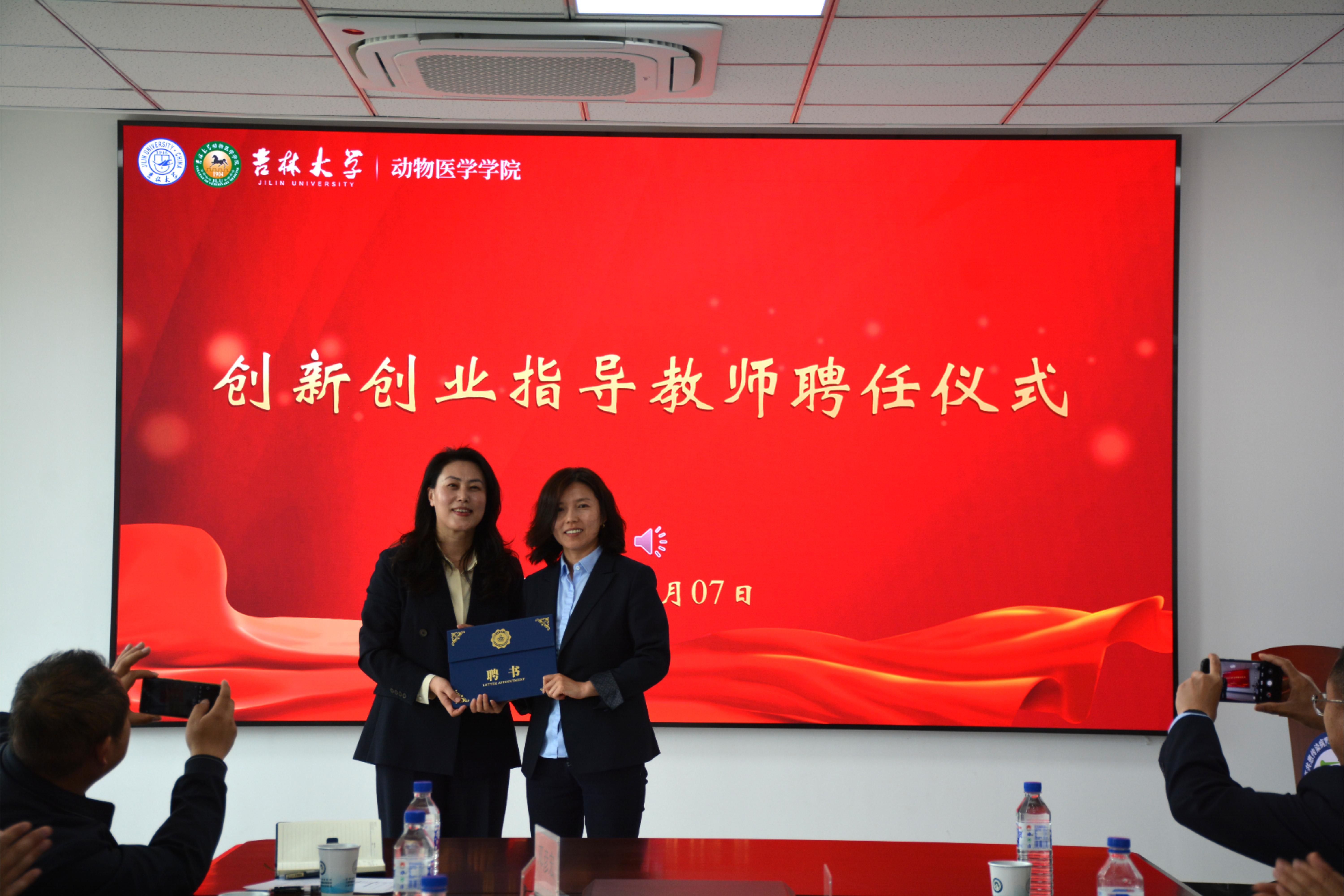 随后,李建华院长对参加本次简要介绍参会人员并致欢迎词,代表学院颁发创新创业指导教师聘书并合影。座谈会上,李建华院长指出,深化“四链融合”是新时代高等教育与产业协同发展的必然要求。学院依托教育链基础优势,近年来在兽医学、人与动物共有医学等领域构建了特色学科体系,并通过“产学研用”一体化模式,推动人才链与产业链精准对接。与中升挑战生物科技的合作,将有效贯通从基础研究到产业应用的创新链,实现资源互补、价值共创。刘海余总经理高度认同“四链融合”理念,并强调企业作为产业链主体,亟需高校在技术研发与人才供给上的支持。“公司当前在动物疫苗、新型兽药等领域的产能升级,离不开创新链的源头活水和人才链的持续赋能。此次合作将加速技术成果从实验室走向生产线。”
