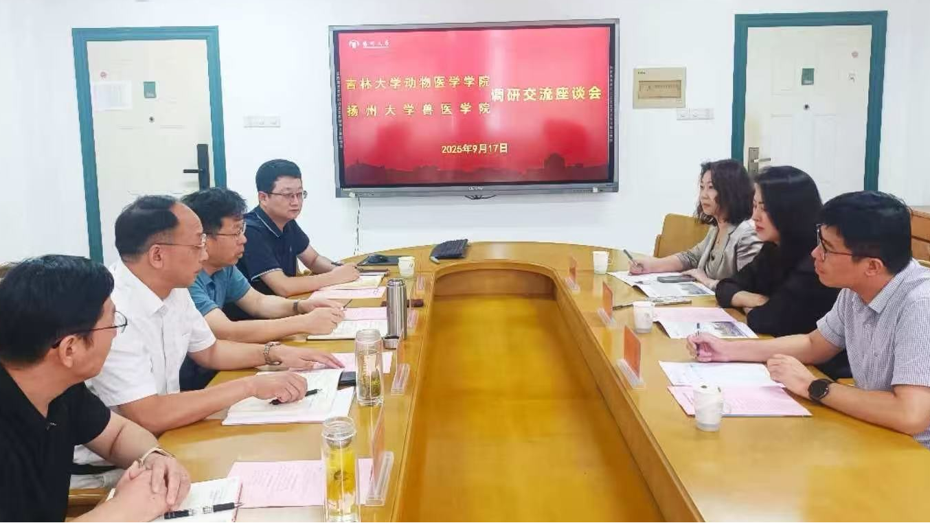 第二站:调研组前往扬州大学兽医院与党委书记王庆林、院长王志强等领导进行座谈交流。会议重点讨论了兽医院的临床教学体系、病例库建设以及与地方企业的合作模式。扬州大学通过建立“临床教学+企业实习”双轨制,提升了学生的实践能力,并在区域动物疫病防控中发挥了重要作用。调研组对其在校企深度融合、实现教学与服务双赢的创新模式给予了充分肯定。