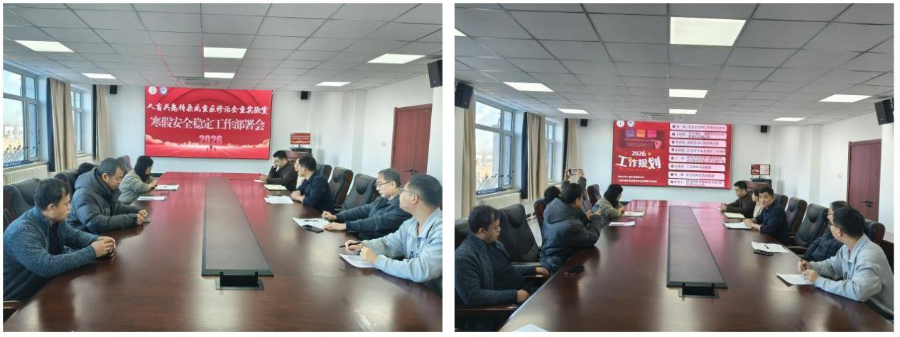1月21日上午9点至12点,根据学校和学院相关要求,人畜共患传染病重症诊治全国重点实验室组织召开了寒假安全稳定工作部署会暨2026年度重点工作研讨会。全重实验室全体行政工作人员以及中心仪器室、P2动物房相关负责人参加了会议。会议由全重实验室专职副主任宋吉武主持。